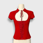 Affichez votre passion pour la K-pop avec ce haut kpop rouge, un haut à lacet ultra-tendance inspiré du look iconique de Jennie. Doté de manches courtes et d’une coupe ajustée qui sublime la silhouette, ce t-shirt mêle style urbain et élégance coréenne, parfait pour compléter une tenue streetwear ou casual chic.