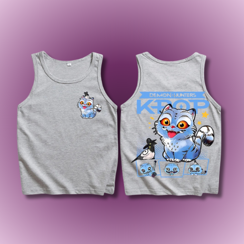 Our Demon Hunters men’s tank top combines comfort and style with its original tiger cat print, perfect for a relaxed and modern look inspired by K-pop. Designed for everyday wear, it offers a practical fit and a trendy design that will appeal to lovers of Korean fashion.