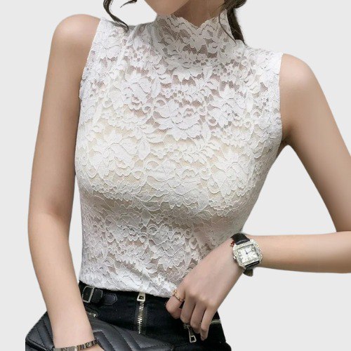 Treat yourself to an elegant and refined look with this tank top Korean high neck. This top perfectly combines the delicate charm of lace with a fitted cut that highlights your silhouette. Inspired by Korean trends, this tank top allows you to combine femininity and modernity in a garment that is both chic and comfortable.