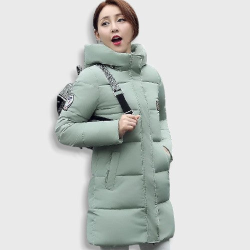 Whether you are strolling in the city or heading to an evening out, this Korean puffer jacket will adapt to all your looks thanks to its minimalist and trendy design. The high-quality padding ensures optimal insulation. The hood effectively protects you from wind and rain.