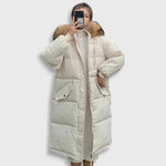 Add a touch of glamour to your winter outfits with the women's Korean puffer jacket. Perfect for those who want to combine fashion and comfort, this puffer jacket protects you from the cold while offering a sophisticated look. Its soft faux fur collar adds a luxurious touch, while keeping your neck nice and warm.