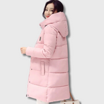 With its high-quality padding, this Korean women's puffer jacket provides optimal insulation against the cold without compromising lightness or freedom of movement. The integrated hood protects you from the elements. Its mid-length offers extra coverage for more comfort during freezing days.