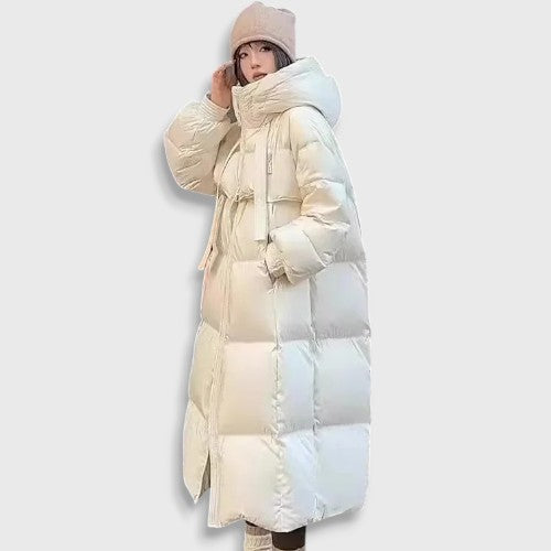 Face winter with style and comfort thanks to this long coat inspired by Korean fashion. Designed for modern women, this coat style Korean perfectly combines elegance and practicality. Its padded down filling protects you from the coldest temperatures, while its hood keeps your head warm on windy or snowy days.