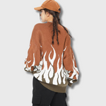 This stylish Korean sweater for women is much more than just a sweater; it embodies a true fashion statement. The flame pattern adds a dynamic and rebellious touch, perfect for those who want to stand out while staying trendy. This sweater lets you play with trends while remaining comfortable.