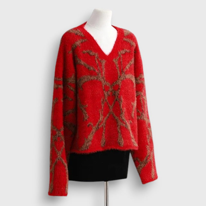 Ce pull rouge k-pop, inspiré des looks tendance de Ningning du groupe Aespa, séduit par son col en V flatteur et sa coupe décontractée qui s’adapte à toutes les silhouettes. Idéal pour composer une tenue casual chic ou ajouter une touche pop à un look plus classique, il se porte aussi bien avec un jean qu’une jupe pour un effet K-pop assuré.