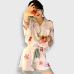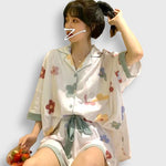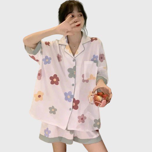 Dive into a world of softness and style with these Korean women's pajamas. Designed to combine comfort and elegance, these pajamas wrap you in a light and breathable fabric, ideal for warm nights. Their floral patterns bring a touch of freshness and femininity, allowing you to stay chic even in your moments of relaxation.