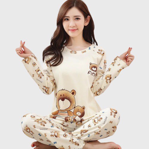 Put on these Korean pajamas to relax after a long day and instantly feel a soothing sense of comfort. The adorable teddy bear print on the top adds a playful and cute touch to your nightwear. Its elegant Korean design adds a refined note to your look even at home.