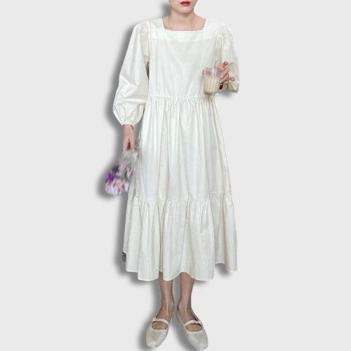 This Korean Style dress available in one size is made of cotton and polyester, perfect for spring and summer, it will suit you perfectly.