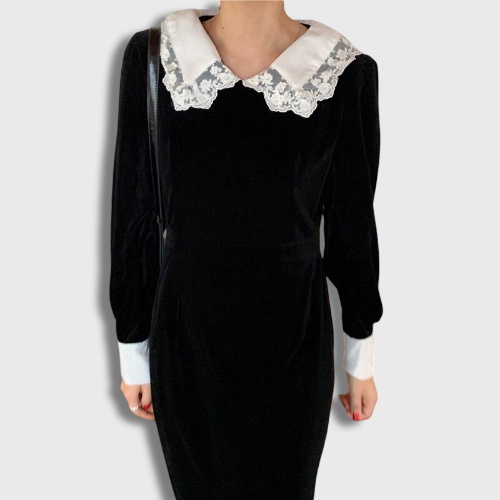 Korean black retro dress for a simple and original style.