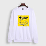 A BTS Sweater to keep KPOP fans warm, perfect for you. Immerse yourself in the BTS Butter universe with the Butter cover directly featured on the front of this beautiful cotton sweater. If the sweater is too warm for you, you can also choose a BTS Butter T-Shirt instead.