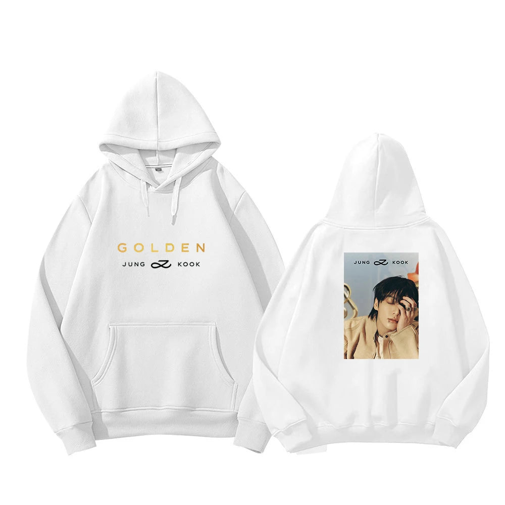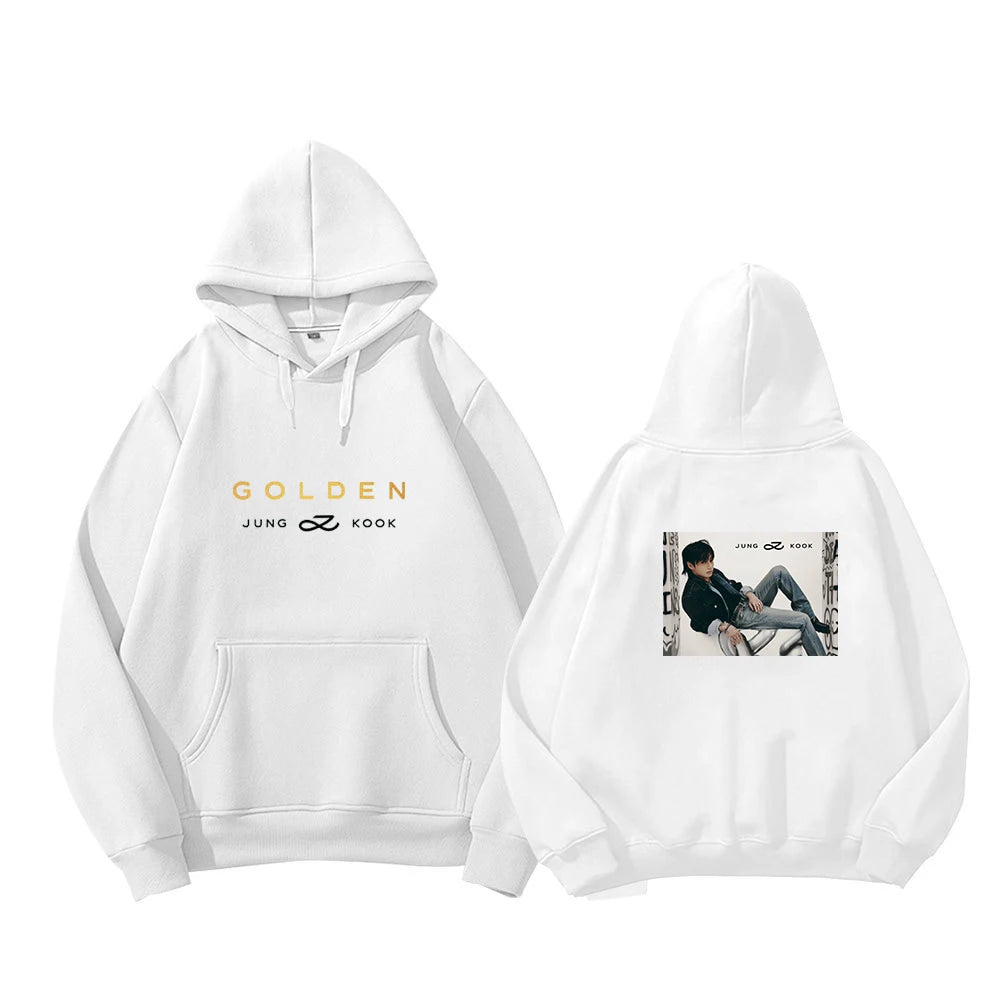 Show your love for Jung Kook with the Golden hoodie, a must-have garment for all fans of the Golden Maknae! This unique hoodie combines style and comfort, with a bold design that pays tribute to one of BTS's most iconic members. Made with high-quality materials, this hoodie is perfect for everyday wear, outings with friends, or K-pop events.