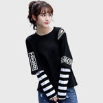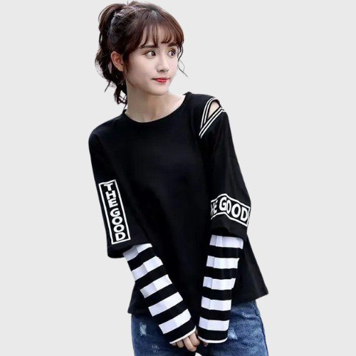 Embrace an avant-garde style with this Korean style t-shirt. This innovative garment combines the appearance of layering without the hassle of multiple layers. With a clever design mimicking a two-piece look, it brings a trendy and modern visual effect while remaining practical and comfortable.