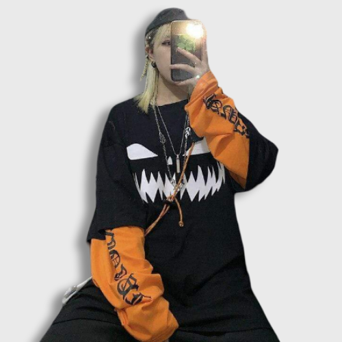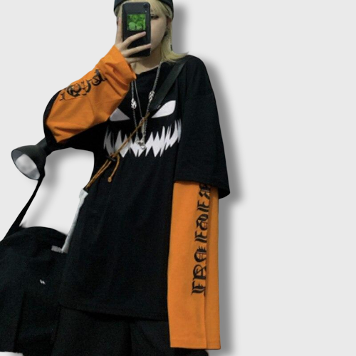 Trendy T-shirt in Korean fashion. Our model wears this T-shirt with the Korean Style; its Uzzlang style gives a look close to Harajuku Fashion style.