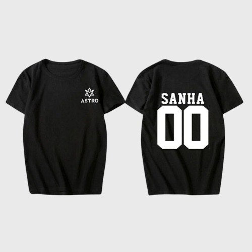 If you love the band Astro, then this KPOP T-Shirt with their logo and artist name on the back will be perfect for you. It's up to you to choose which name you want to put on the back and in what color.