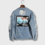 Inspired by Jin from BTS, this jacket will give you guaranteed hype among your friends who are fans of the group. This jacket features faded blue denim with the inscription "Where is My Mind?" on the back.