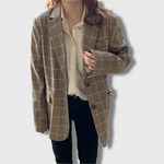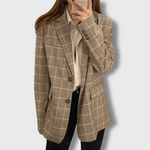 Chic Korean Blazer Jacket in Korean style with plaid that gives a vintage look to the wearer of this jacket.