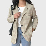 Korean jacket available in two different colors. With plaid patterns, this jacket gives a retro look to your style.