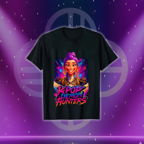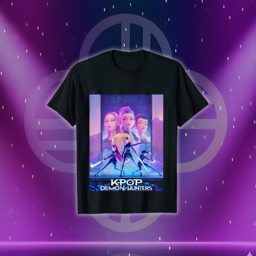 Express your love for KPop with this black Huntrix t-shirt, a comfortable and trendy piece inspired by Korean fashion. Made from soft, breathable fabric, this t-shirt features a bold Demon Hunters design for a look that’s both casual and stylish, perfect for everyday wear or concerts.