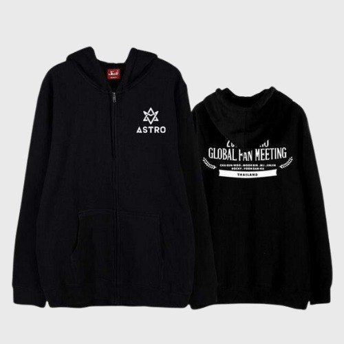 Ce Hoodie KPOP du groupe Astro est disponible en noir, gris ou blanc. Le logo est visible sur l'avant et derrière on retrouve le design fan meeting du groupe.