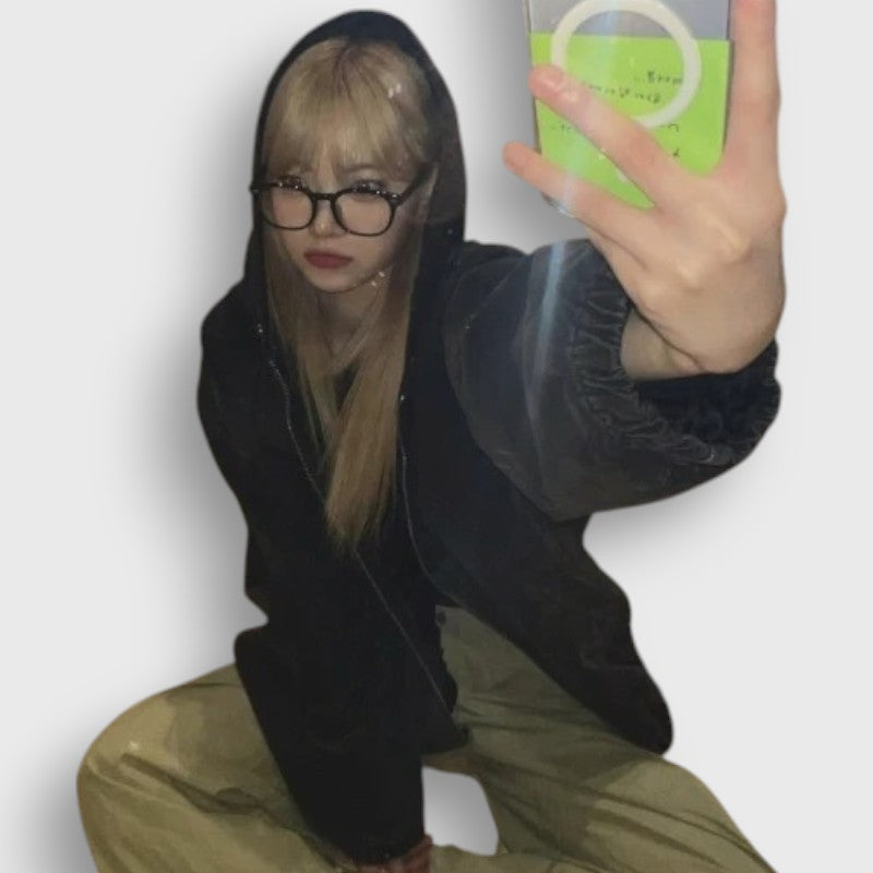 Adoptez un look casual et tendance avec cette veste jeans oversize kpop, une pièce inspirée du style cool et décontracté d’Eunchae. Conçue en denim avec une coupe oversize, cette veste zippée à capuche apporte une vraie touche streetwear à vos tenues tout en restant confortable et facile à porter.