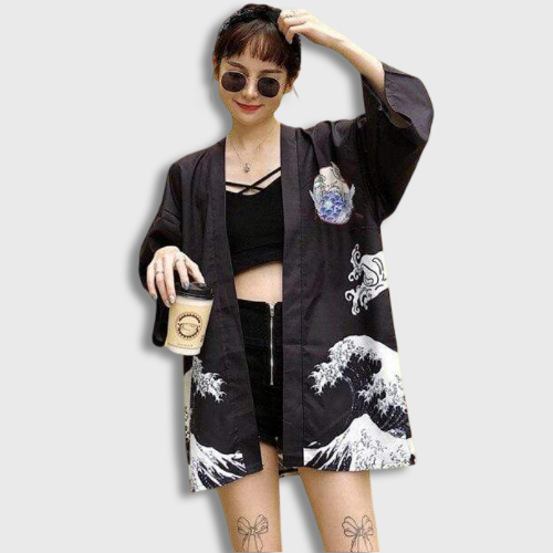 Omarm een originele stijl met een Aziatische kimono in streetwear stijl. Perfect voor de Japanse Harajuku mode maar ook geschikt voor de Koreaanse Hallyu stijl. Deze kimono is een lichte en comfortabele Koreaanse blouse voor een trendy look.