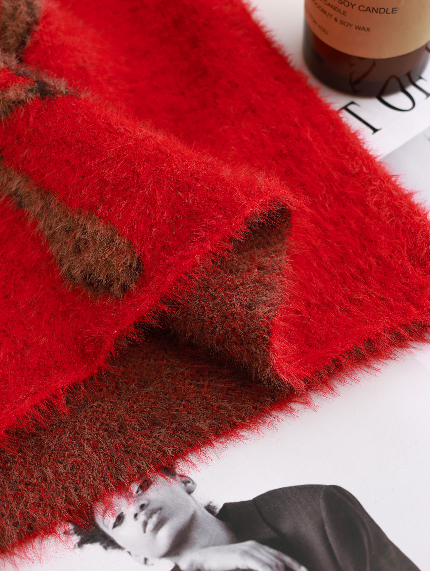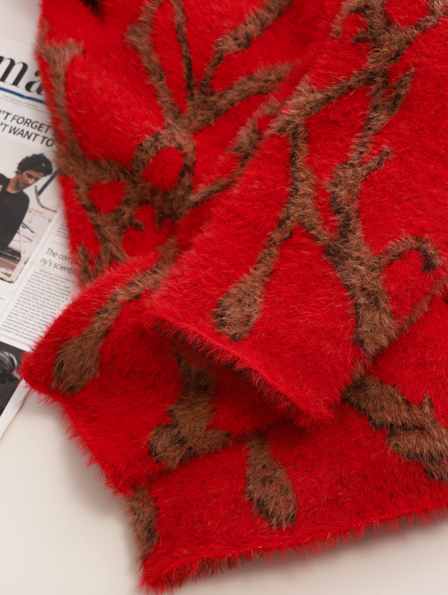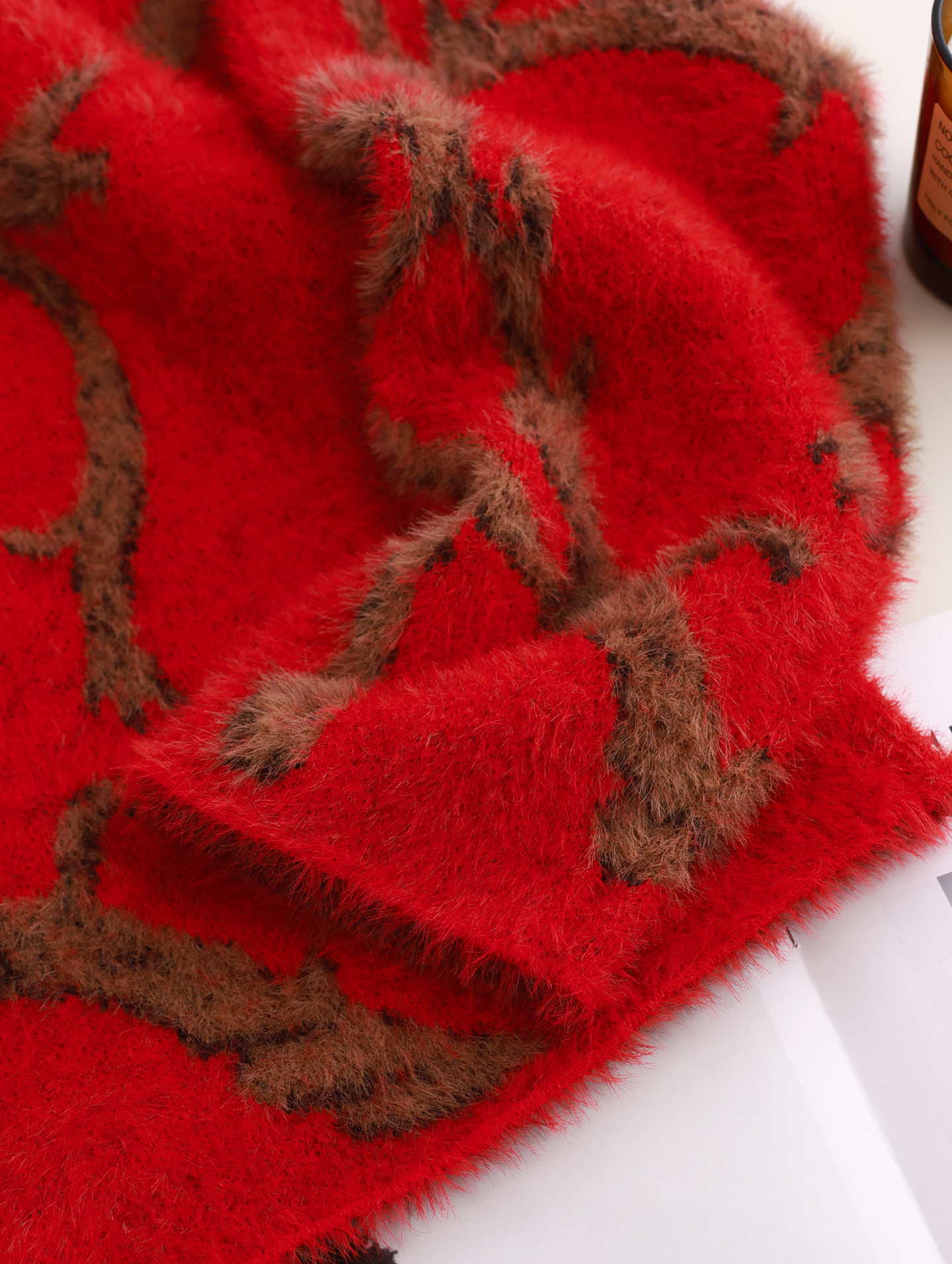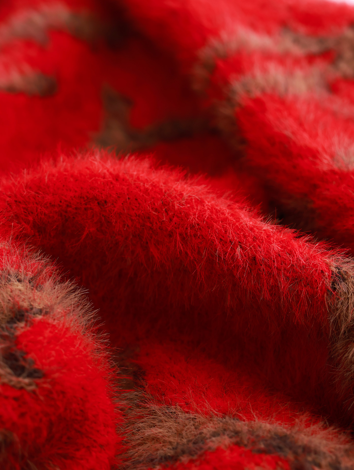 Rode Onregelmatige Jacquard Gebreide Trui Dames Losse Imitatie Nerts V-hals Pullover Trui Sueter Mujer Mohair Lange Mouw Tops